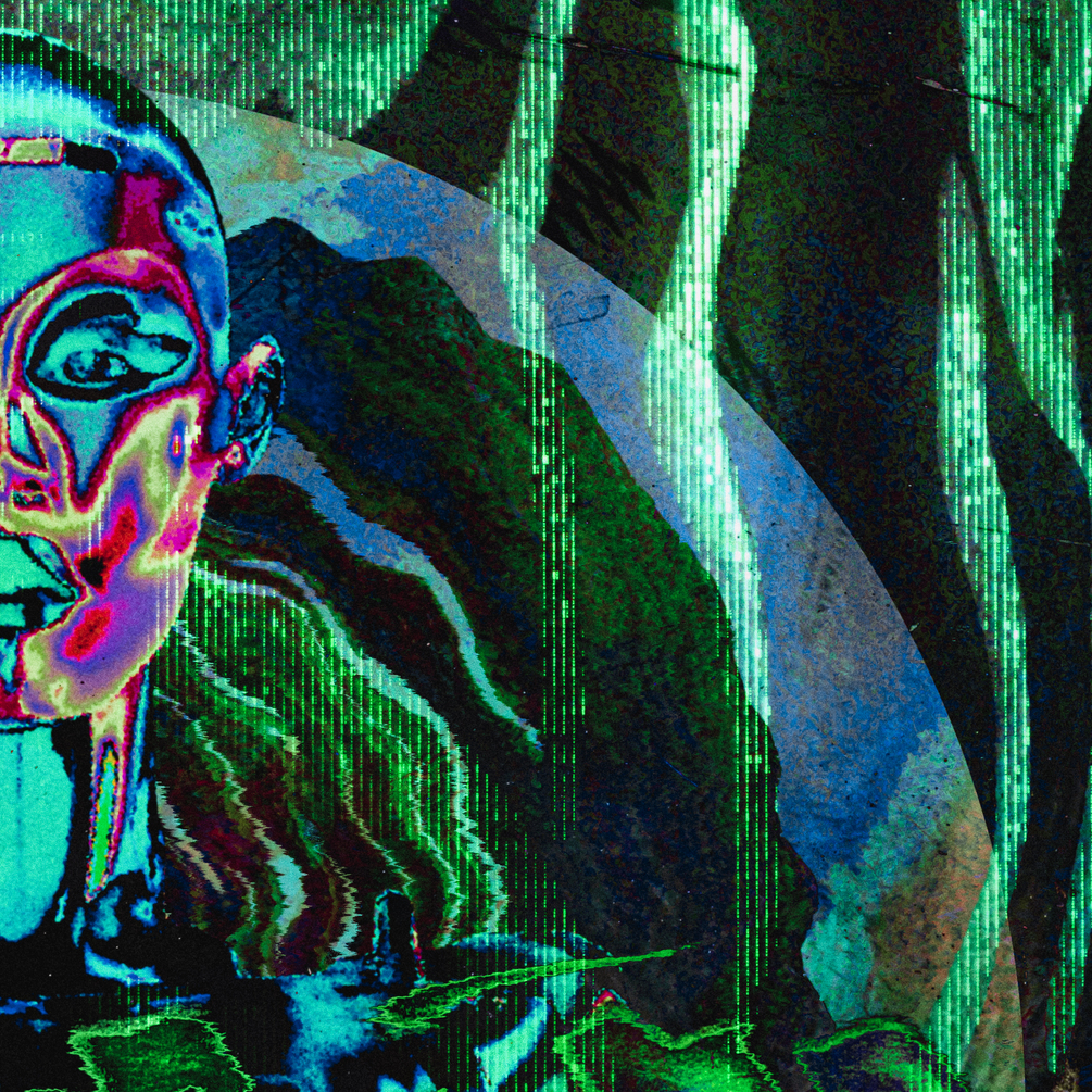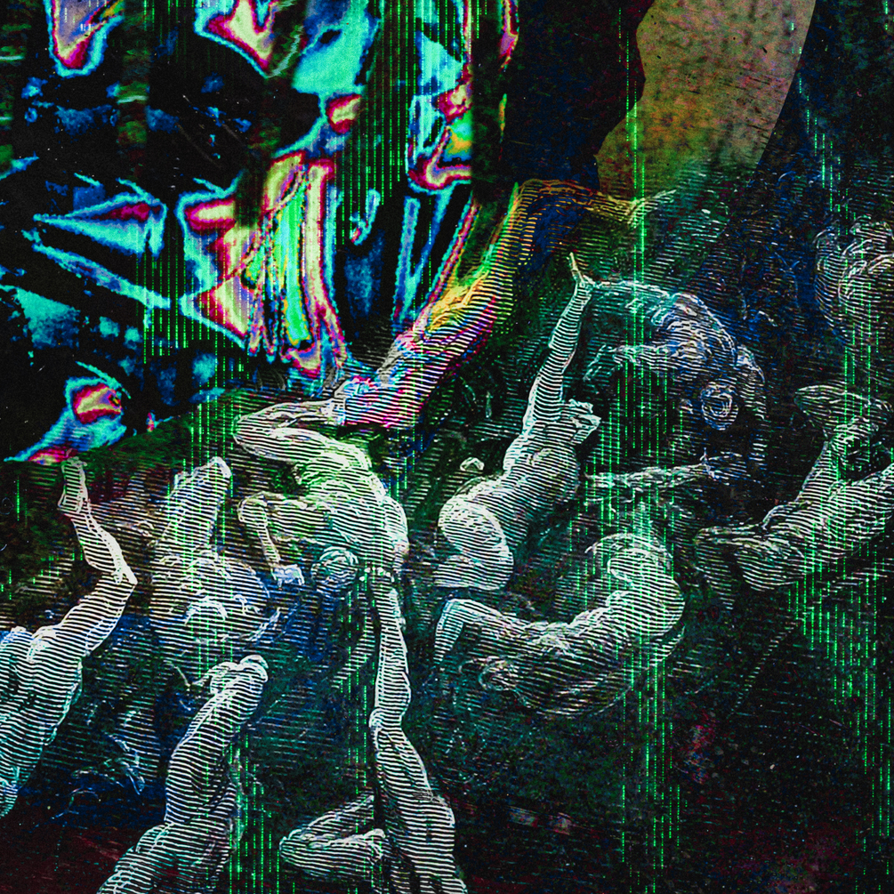 High-resolution digital artwork, inspired by science-fiction, AI, and dystopian ideas, in a modern horrorcore/Crust-punk style.